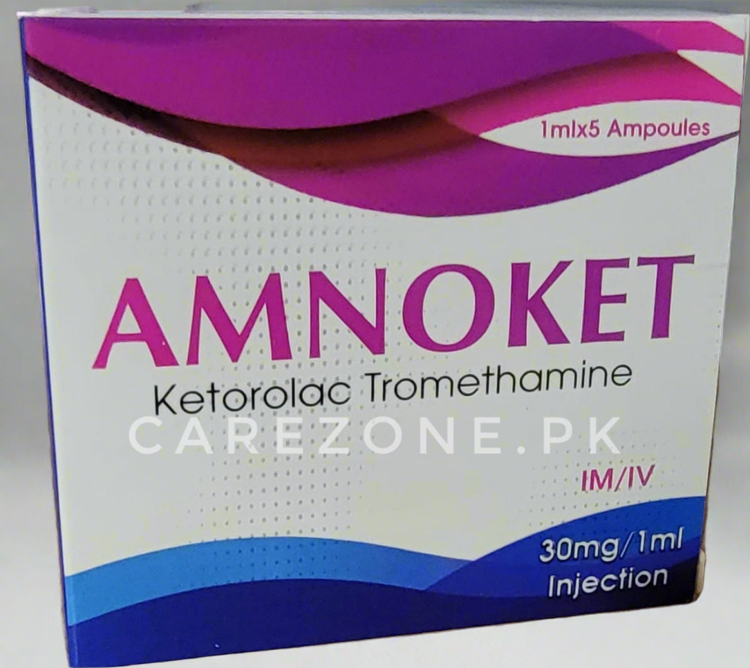 Get Amnoket Injection 30mg/ml (5 ampoules pack) from Carezone.pk today and provide fast, reliable pain relief with every dose.