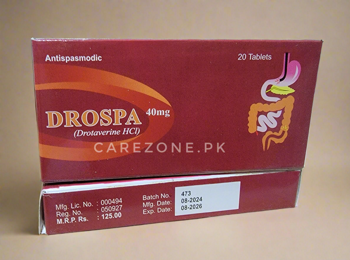 Buy DROSPA 40mg Tablets online now from Carezone.pk. DROSPA provides fast relief from spasms and pain. DROSPA is your trusted solution for abdominal discomfort. DROSPA 40mg is available at unbeatable prices at Carezone.pk!
