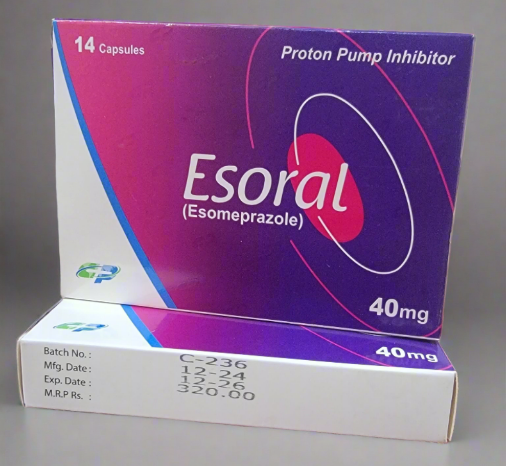Esoral 40mg contains Omeprazole, a proton pump inhibitor (PPI) used to effectively treat acid reflux, heartburn, gastric ulcers, indigestion, and gastroesophageal reflux disease (GERD). Esoral 40mg works by reducing the amount of acid produced in the stomach, providing long-term relief from acidity and promoting healing of ulcers.