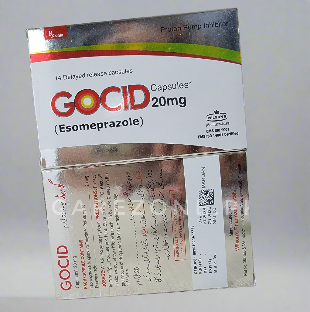 Buy GOCID 20mg (Esomeprazole) Capsules at the best price only at CareZone.pk. We offer the lowest wholesale rates with bulk purchasing options and doorstep delivery.