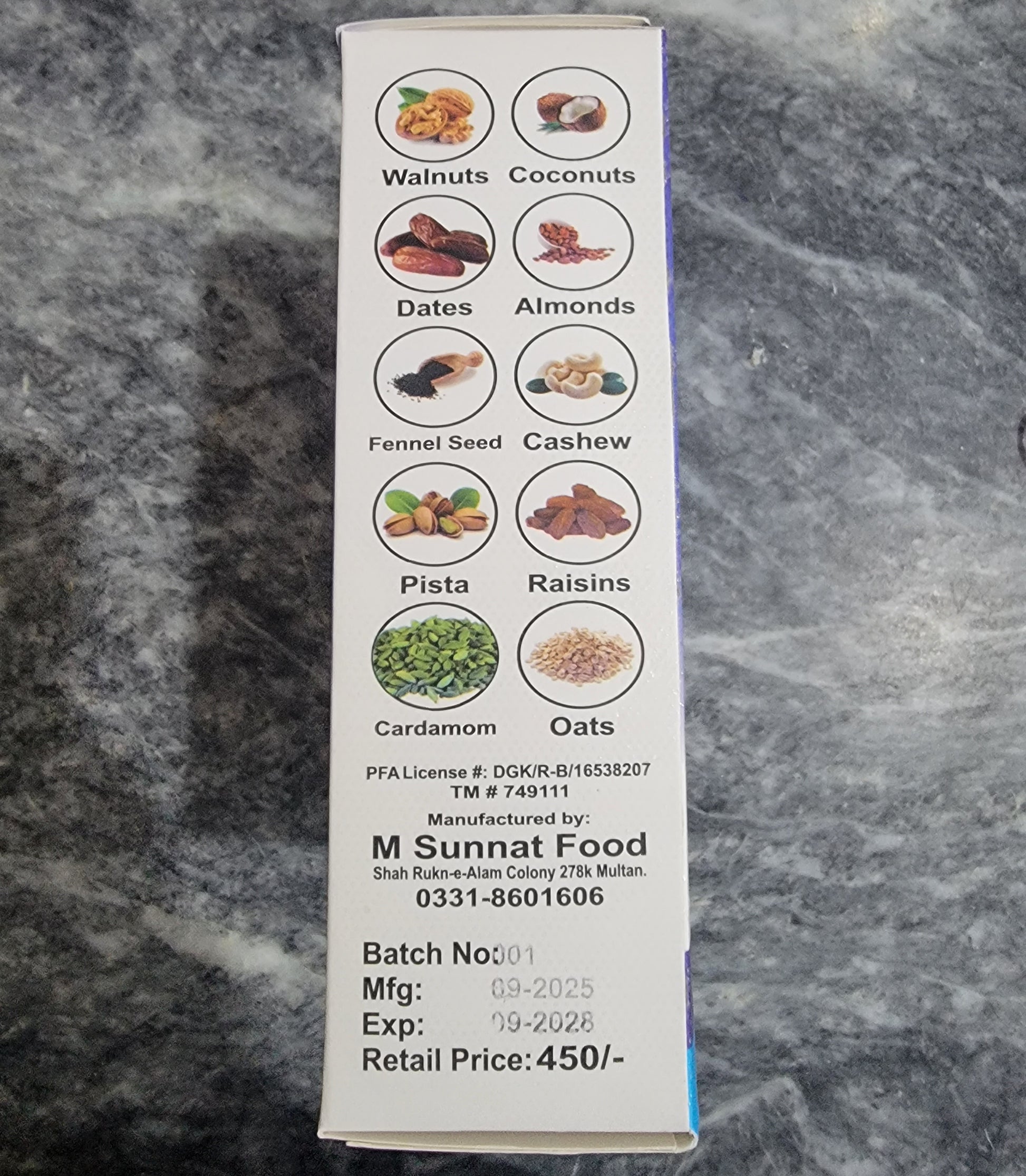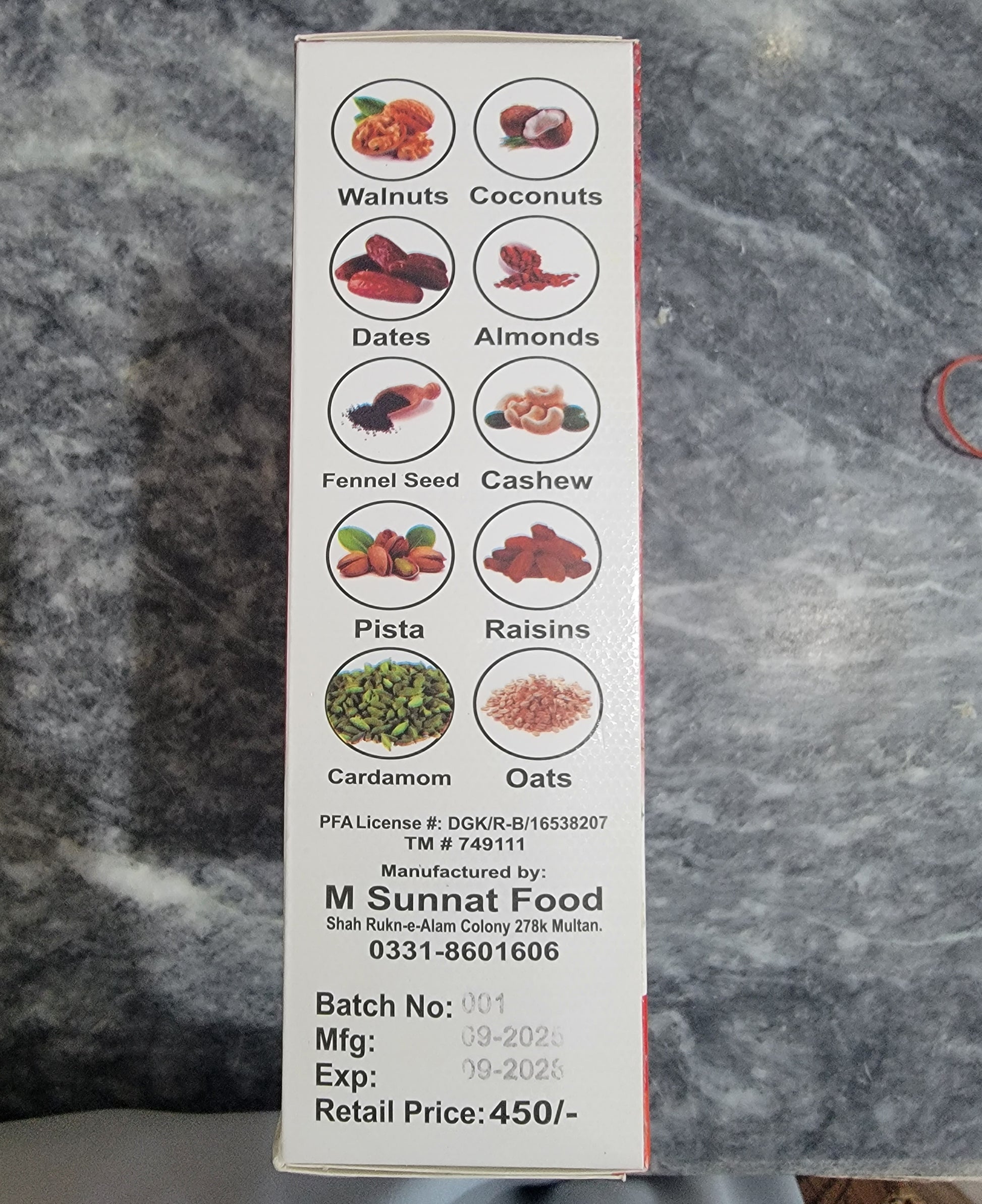 Crafted by M Sunnat Food in Multan, Pakistan, this 100% natural mix is your instant solution for an energy-boosting meal. Say goodbye to processed cereals and hello to a wholesome, fulfilling start to your day!
