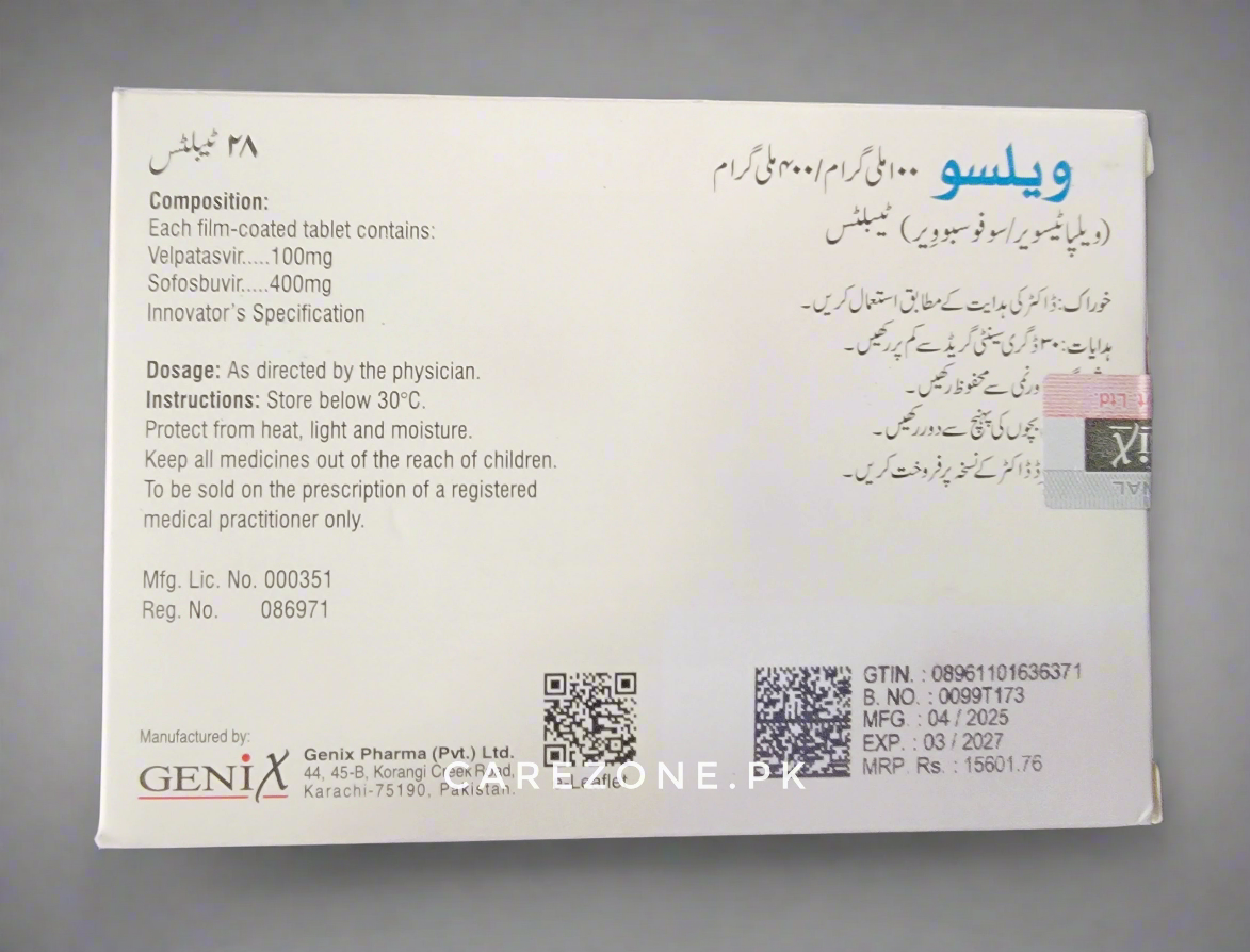 Carezone.pk offers the best rates possible. Experience the best wholesale prices in Pakistan—exclusively at Carezone.pk. VELSO Velpatasvir + Sofosbuvir Tablets آج ہی خریدیں صرف Carezone.pk سے، بہترین قیمت پر۔