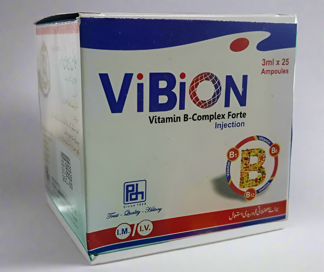 Vibion Injection uses: Vibion Injection is a neuro-supportive Vitamin B-Complex Forte formulation designed to treat and prevent vitamin B deficiencies. It is widely used to manage peripheral neuropathy, neuritis, general body weakness, and fatigue. Vibion Injection helps strengthen the nervous system, boosts energy levels, and supports overall metabolic health.